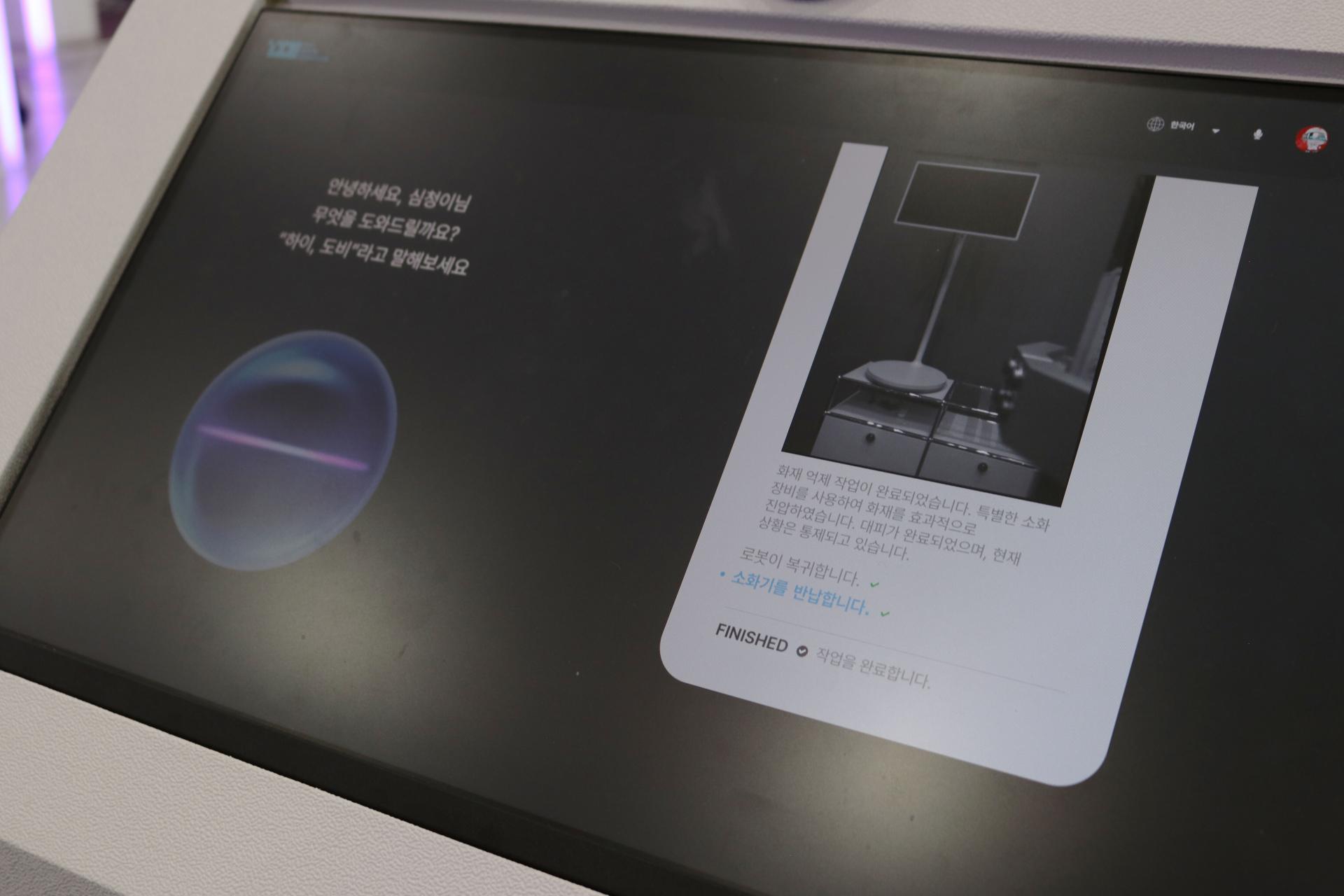 시연 현장에서는 드론이 이륙하자 관람객들의 시선이 집중되었고, MOMA가 건물 내부로 진입해 소화기로 불을 끄고 돌아오는 모습에는 모두가 놀라움을 감추지 못했습니다.