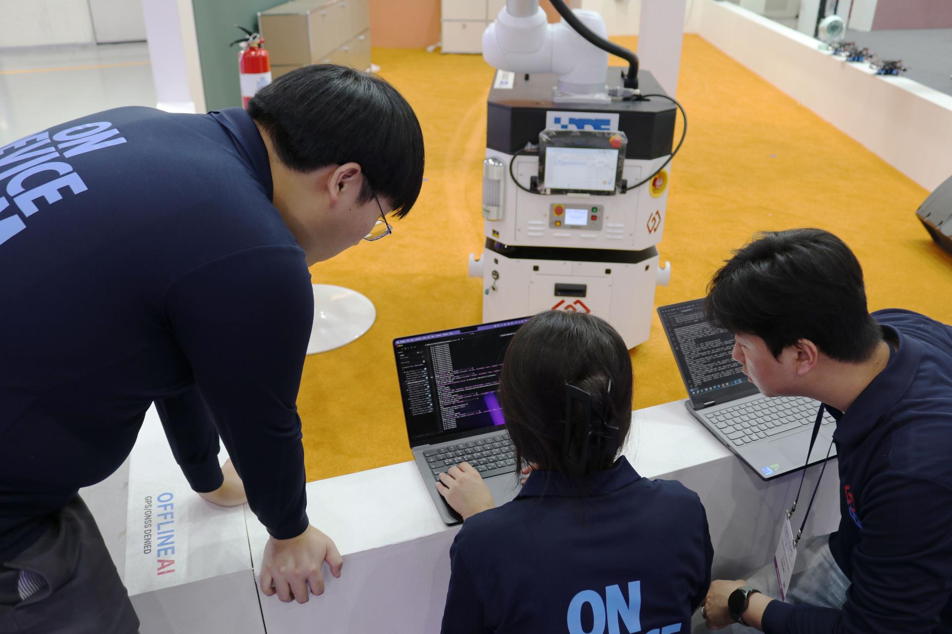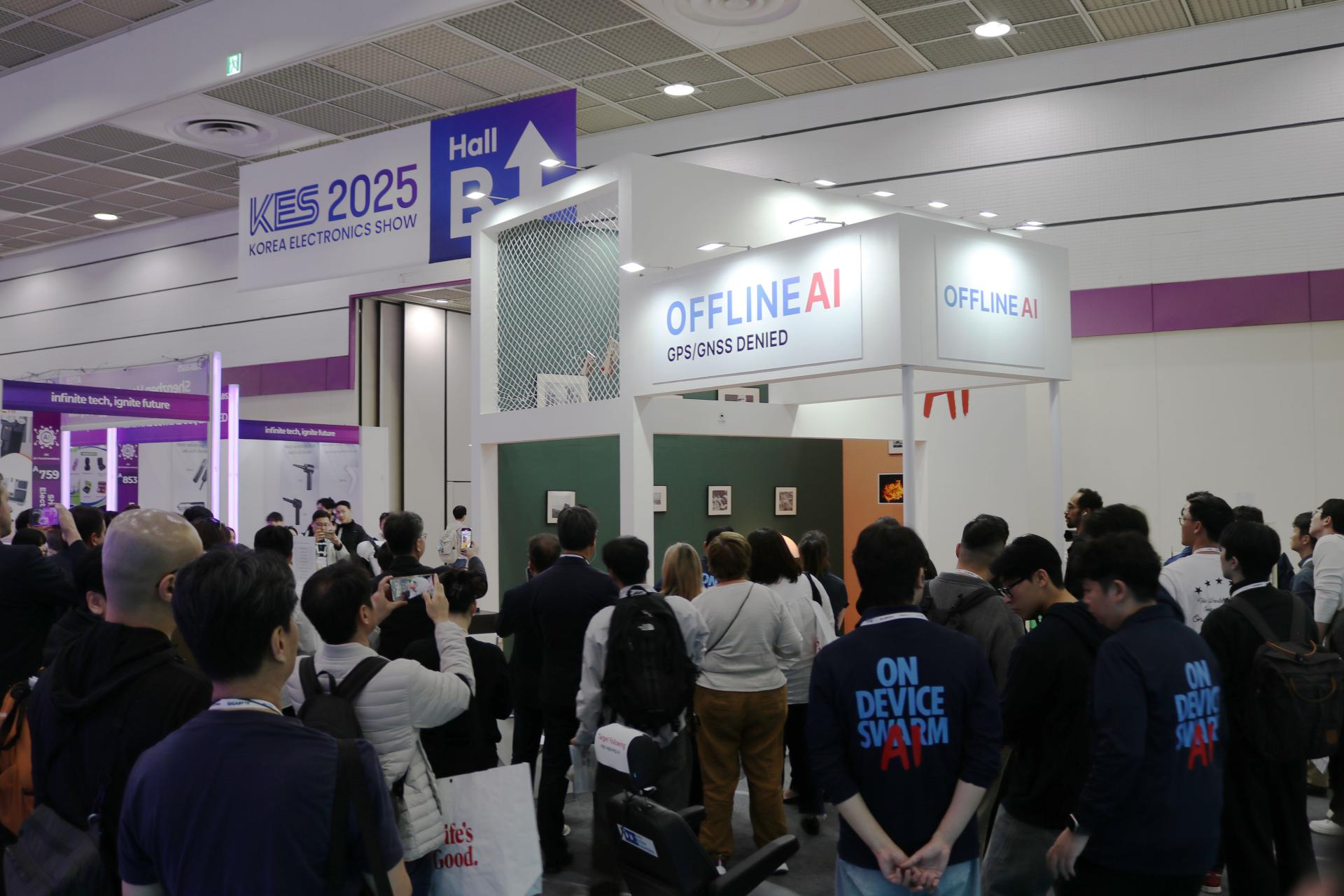 DDE는 고성엔지니어링과 함께 “ON DEVICE SWARM AI”라는 슬로건 아래, 오프라인 및 GPS/GNSS가 제한된 환경에서도 Drone, MOMA, SMART Chair가 자율적으로 협력하는 OFFLINE AI 시스템 기술을 선보였습니다.